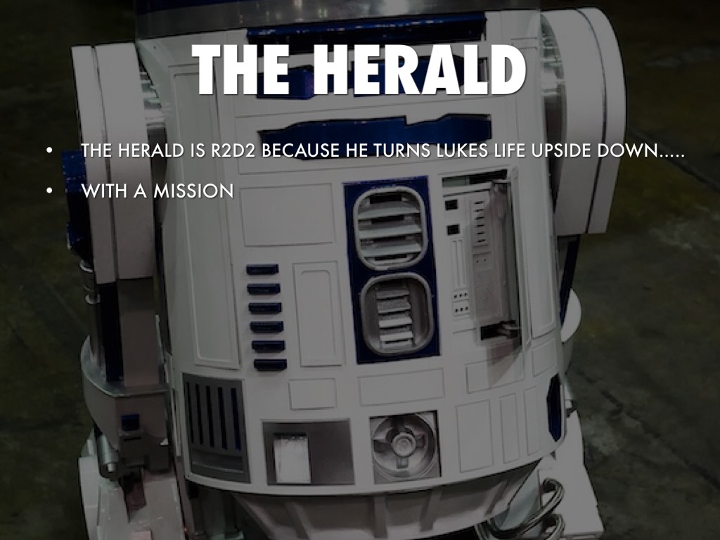 THE HERALD IS R2D2 BECAUSE HE TURNS LUKES LIFE UPSIDE DOWN.....