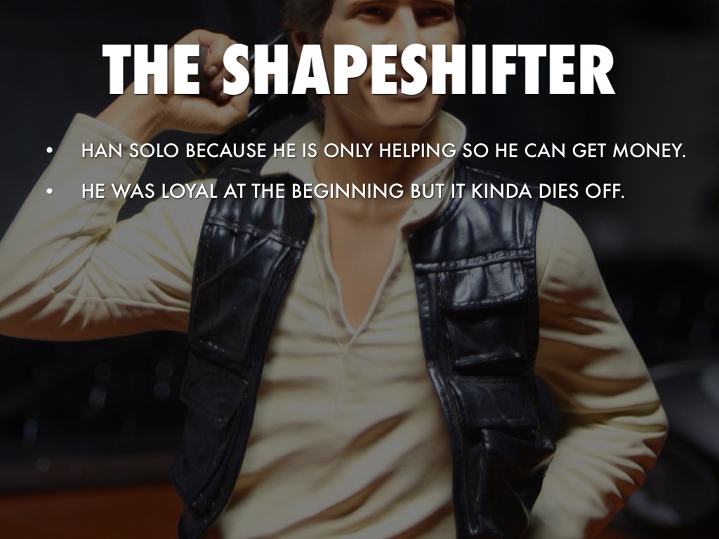 HAN SOLO BECAUSE HE IS ONLY HELPING SO HE CAN GET MONEY.