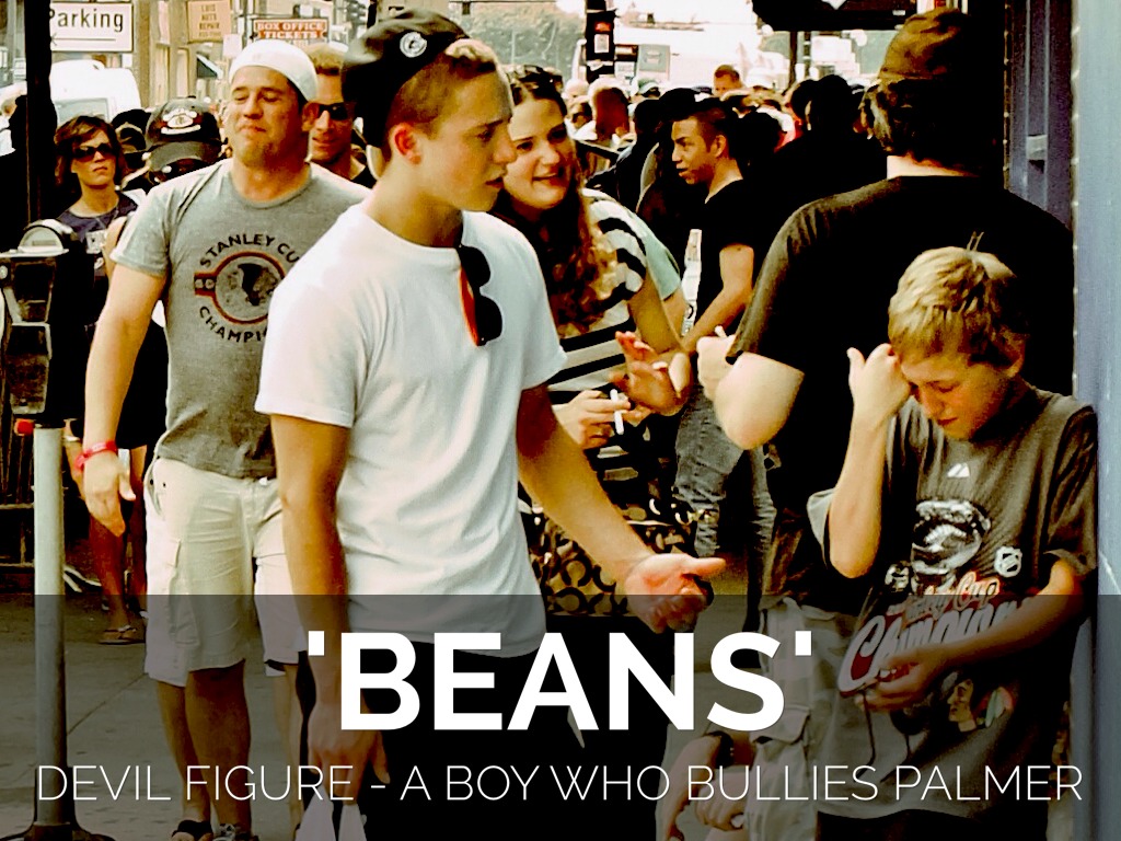 Beans is a kid who bullies Palmer, and tries to get him to kill his pigeon.