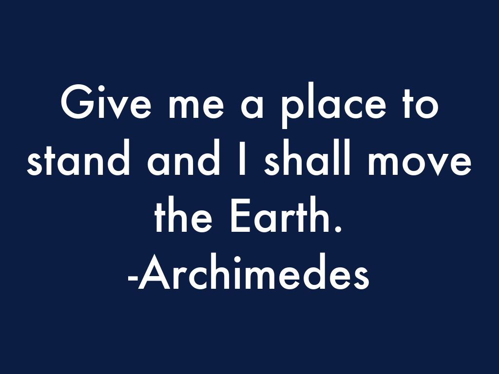 Give me a place to stand and I shall move the Earth.