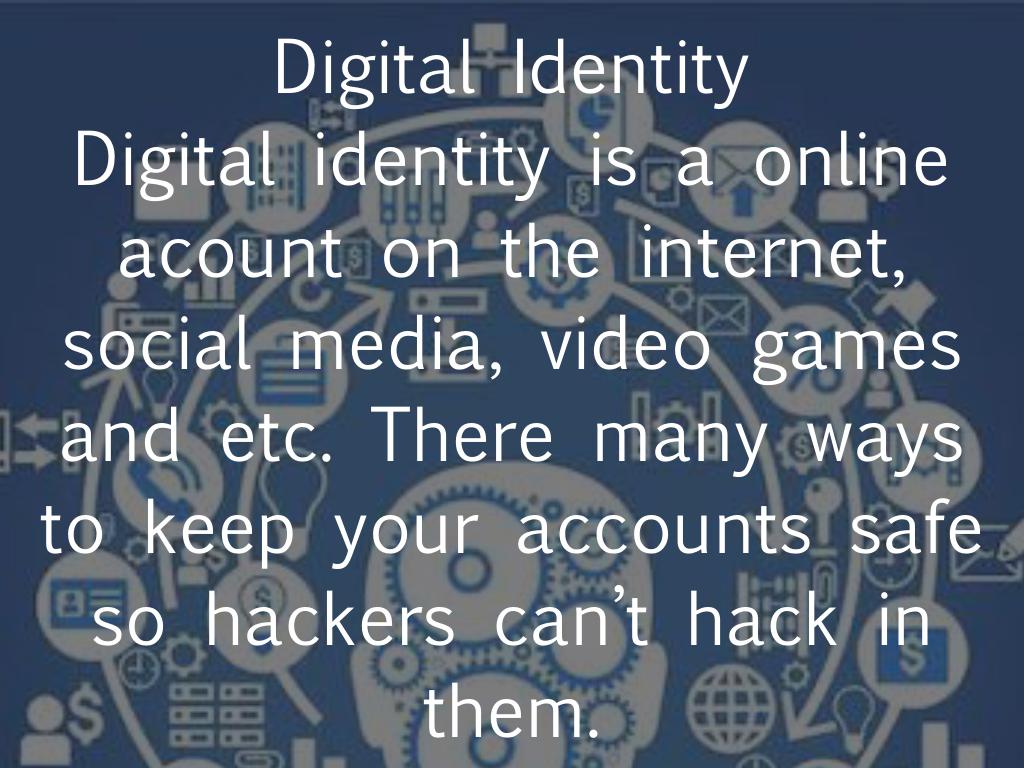 Digital identity is a online acount on the internet, social media, video games and etc. There many ways to keep your accounts safe so hackers can’t hack in them.