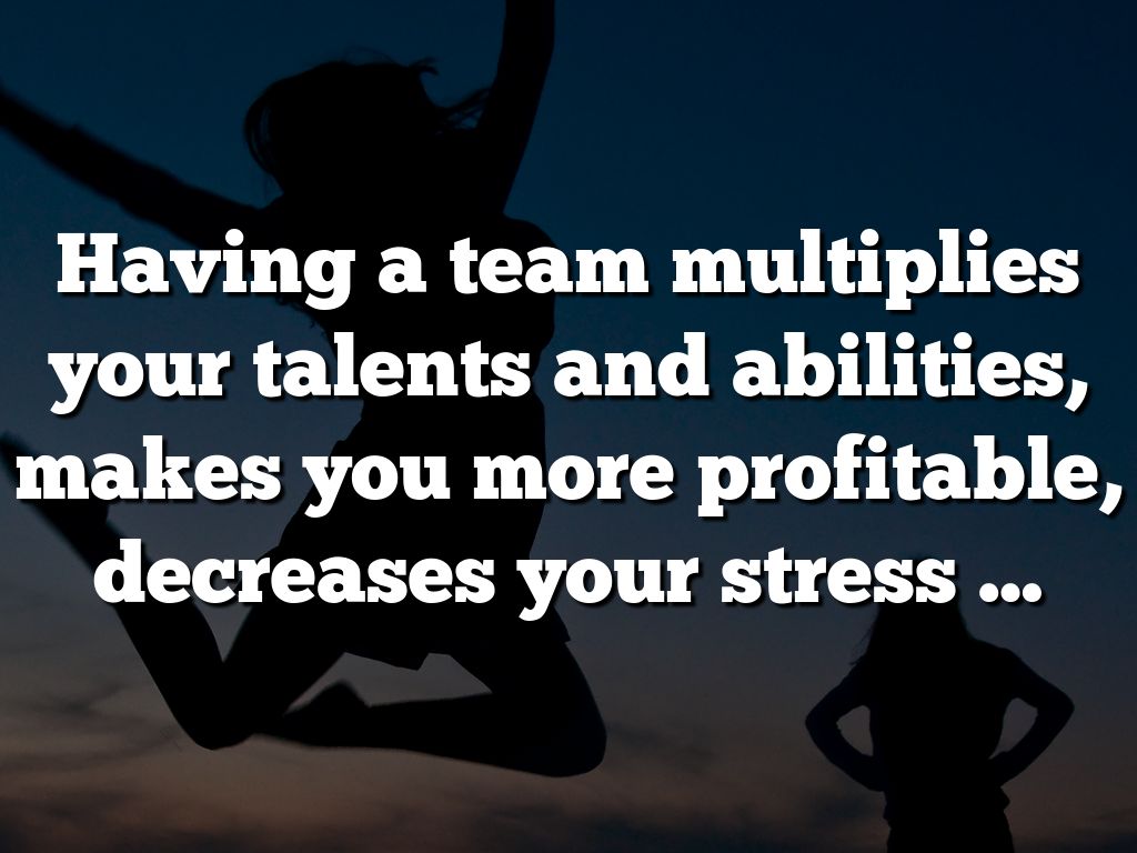 Having a team multiplies your talents and abilities, makes you more profitable, decreases your stress …