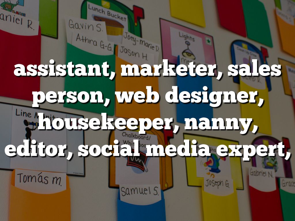 assistant, marketer, sales person, web designer, housekeeper, nanny, editor, social media expert,