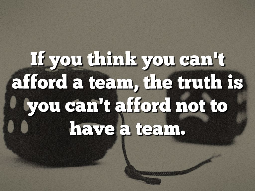If you think you can’t afford a team, the truth is you can’t afford not to have a team.