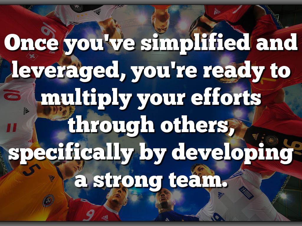 Once you’ve simplified and leveraged, you’re ready to multiply your efforts through others, specifically by developing a strong team.