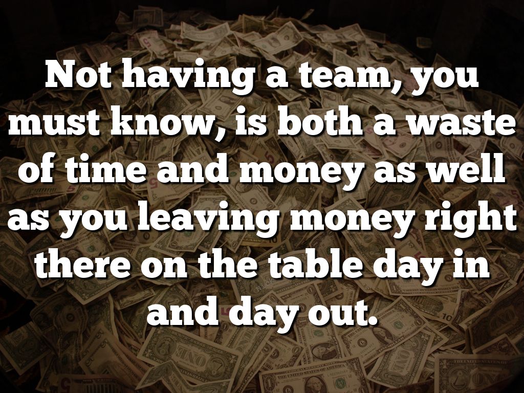 Not having a team, you must know, is both a waste of time and money as well as you leaving money right there on the table day in and day out.