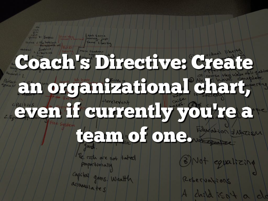 Coach’s Directive: Create an organizational chart, even if currently you’re a team of one.