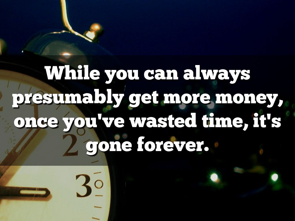 While you can always presumably get more money, once you’ve wasted time, it’s gone forever.