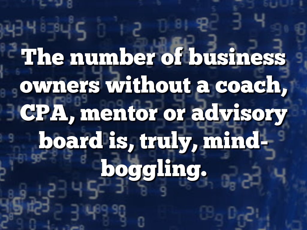 The number of business owners without a coach, CPA, mentor or advisory board is, truly, mind-boggling.