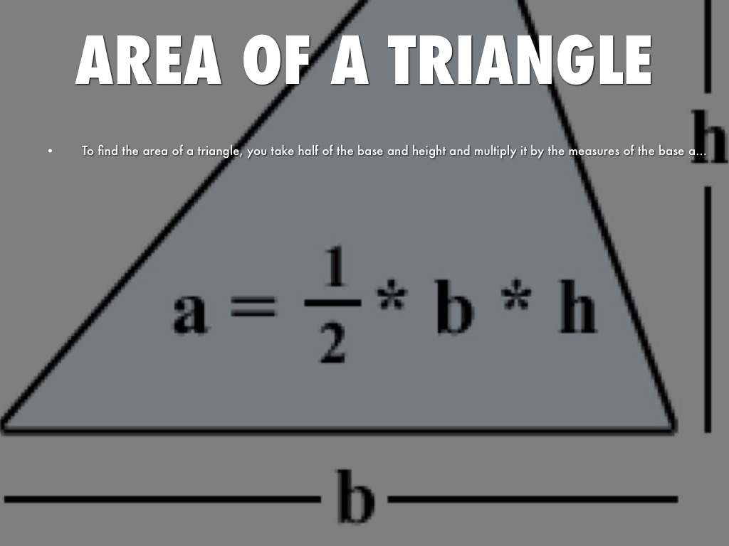 To find the area of a triangle, you take half of the base and height and multiply it by the measures of the base and height.