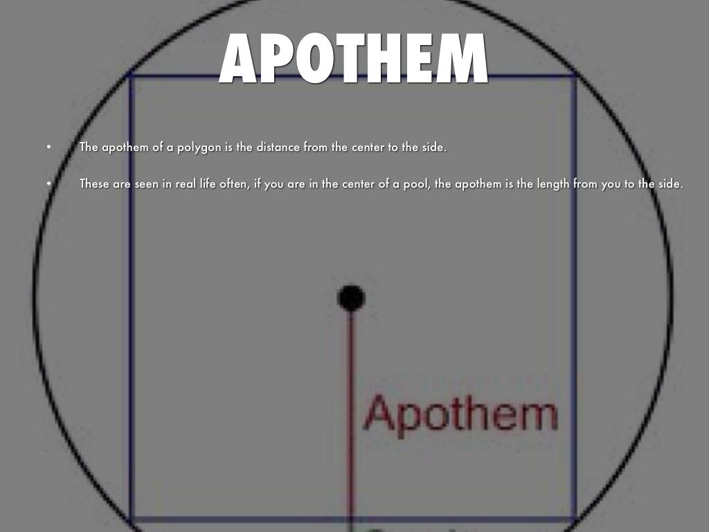 These are seen in real life often, if you are in the center of a pool, the apothem is the length from you to the side.