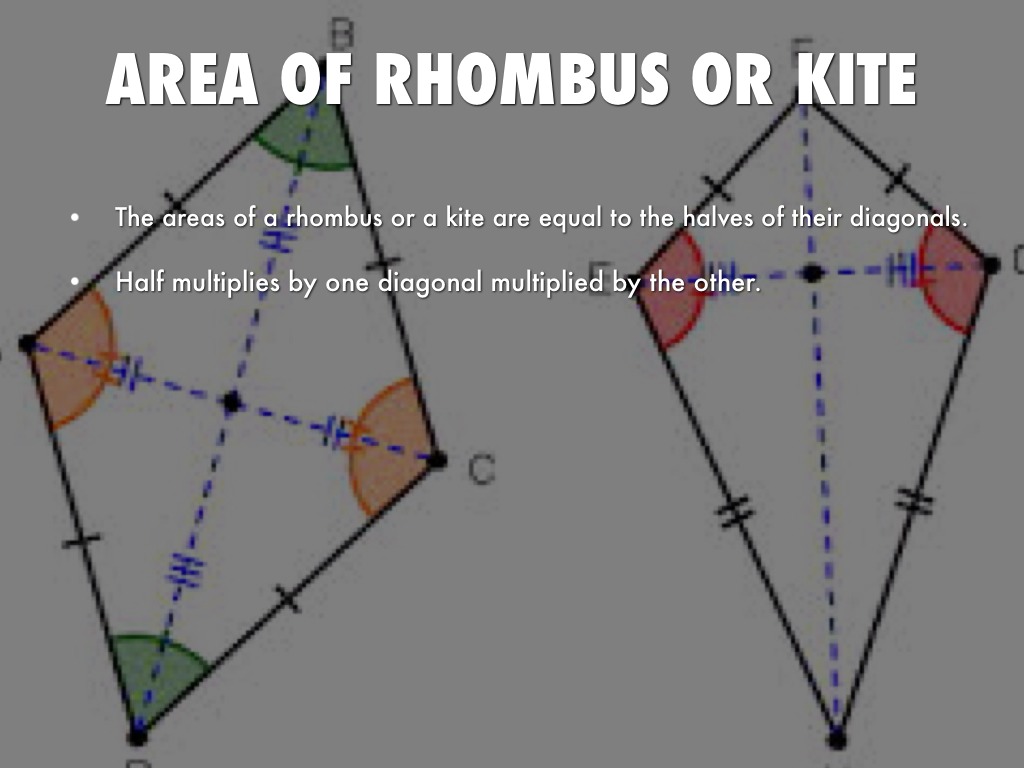 The areas of a rhombus or a kite are equal to the halves of their diagonals.