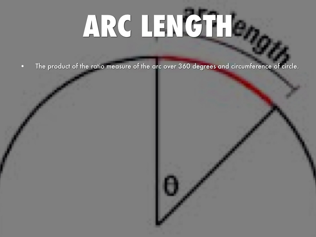 The product of the ratio measure of the arc over 360 degrees and circumference of circle.