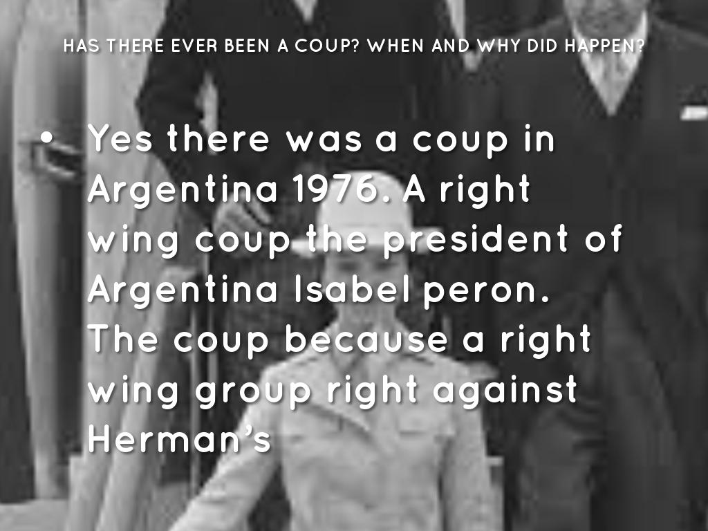 • Yes there was a coup in Argentina 1976. A right wing coup the president of Argentina Isabel peron. The coup because a right wing group right against Herman’s