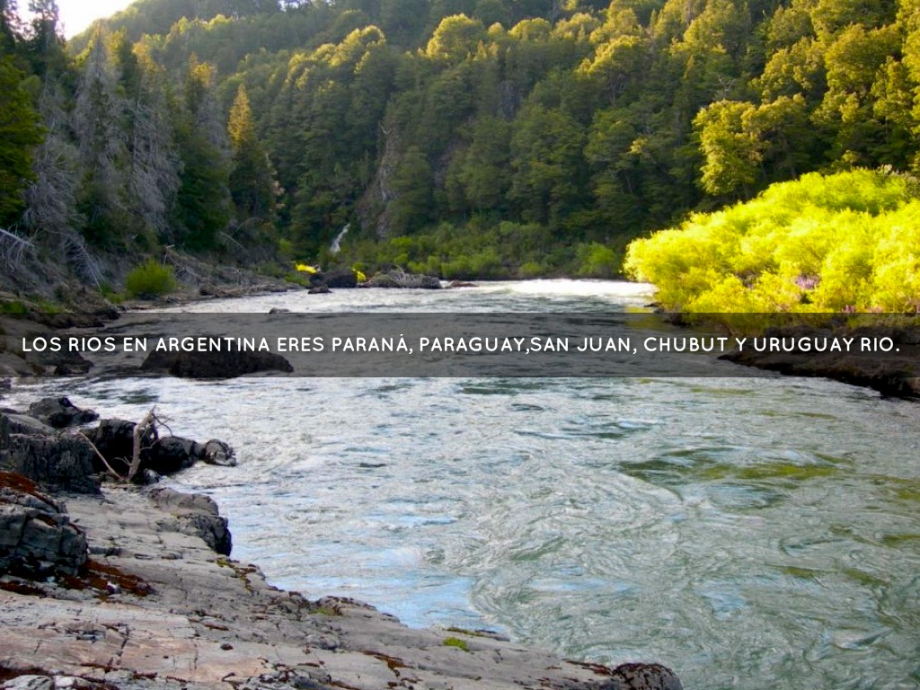 LOS RIOS EN ARGENTINA ERES PARANÁ, PARAGUAY,SAN JUAN, CHUBUT Y URUGUAY RIO.