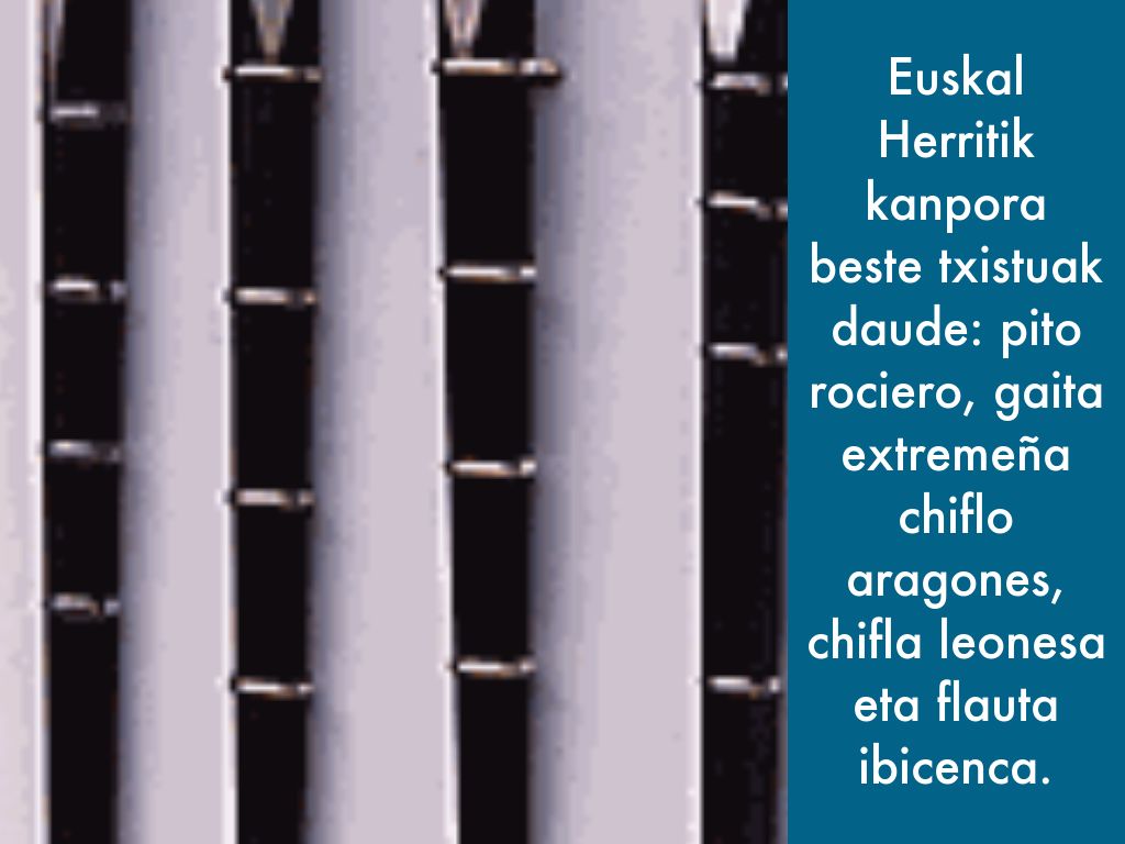Euskal Herritik kanpora beste txistuak daude: pito rociero, gaita extremeña chiflo aragones, chifla leonesa eta flauta ibicenca.