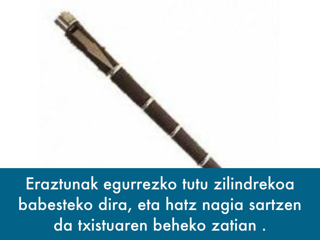 Eraztunak egurrezko tutu zilindrekoa babesteko dira, eta hatz nagia sartzen da txistuaren beheko zatian .