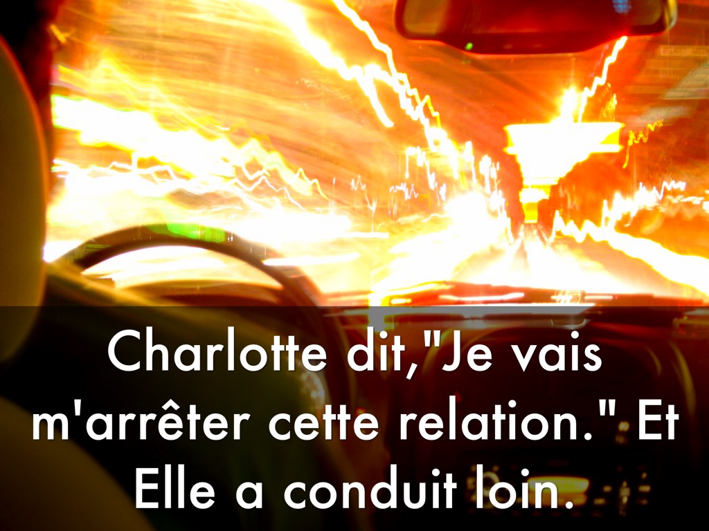 Charlotte dit,"Je vais m'arrêter cette relation." Et Elle a conduit loin.