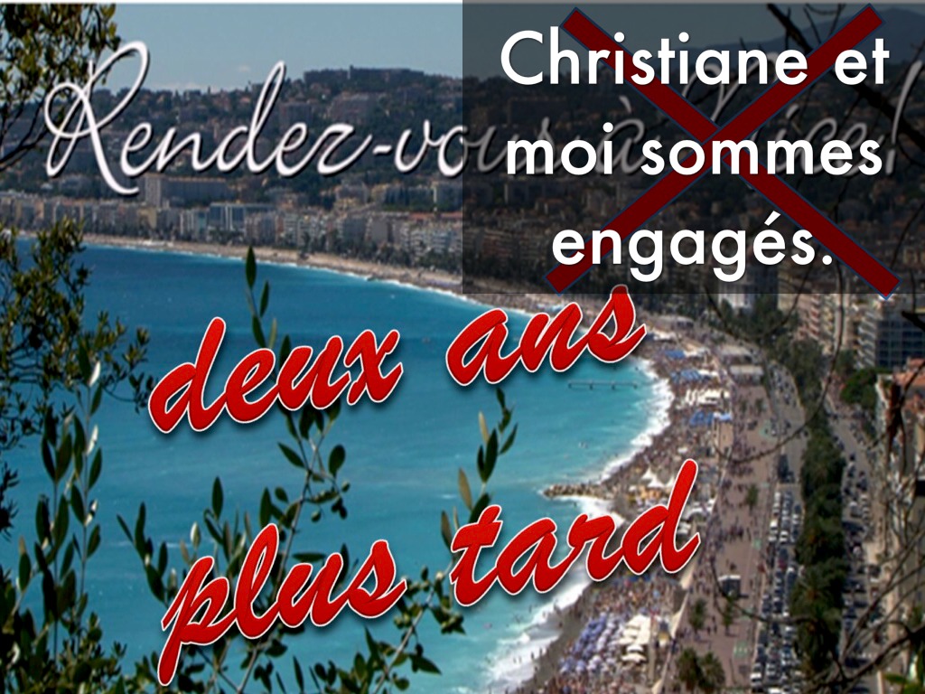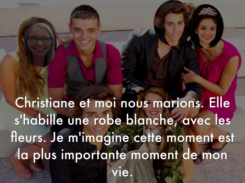 Christiane et moi nous marions. Elle s'habille une robe blanche, avec les fleurs. Je m'imagine cette moment est la plus importante moment de mon vie.