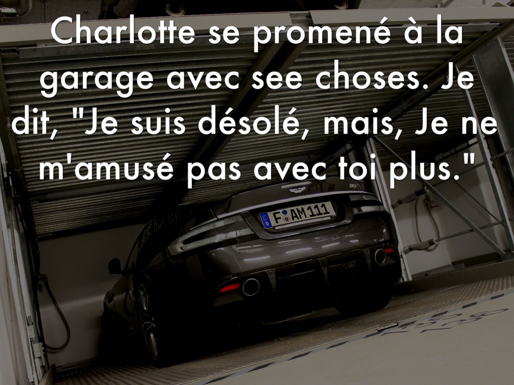 Charlotte se promené à la garage avec see choses. Je dit, "Je suis désolé, mais, Je ne m'amusé pas avec toi plus."