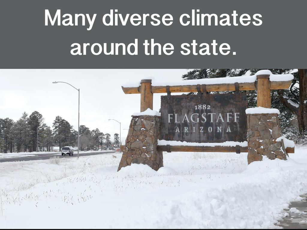 Many diverse climates around the state.