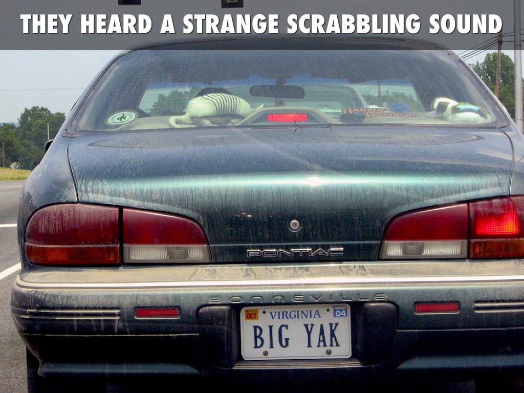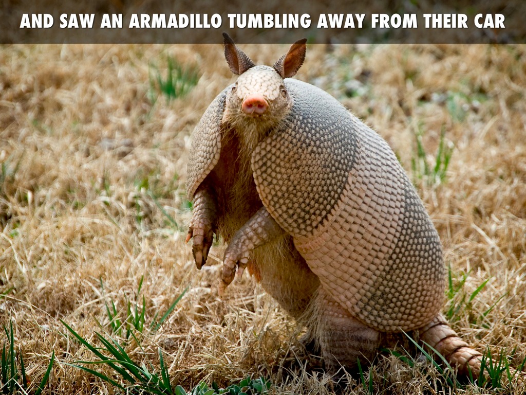 AND SAW AN ARMADILLO TUMBLING AWAY FROM THEIR CAR