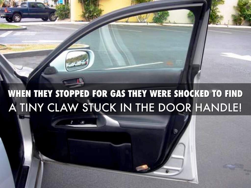 A TINY CLAW STUCK IN THE DOOR HANDLE!