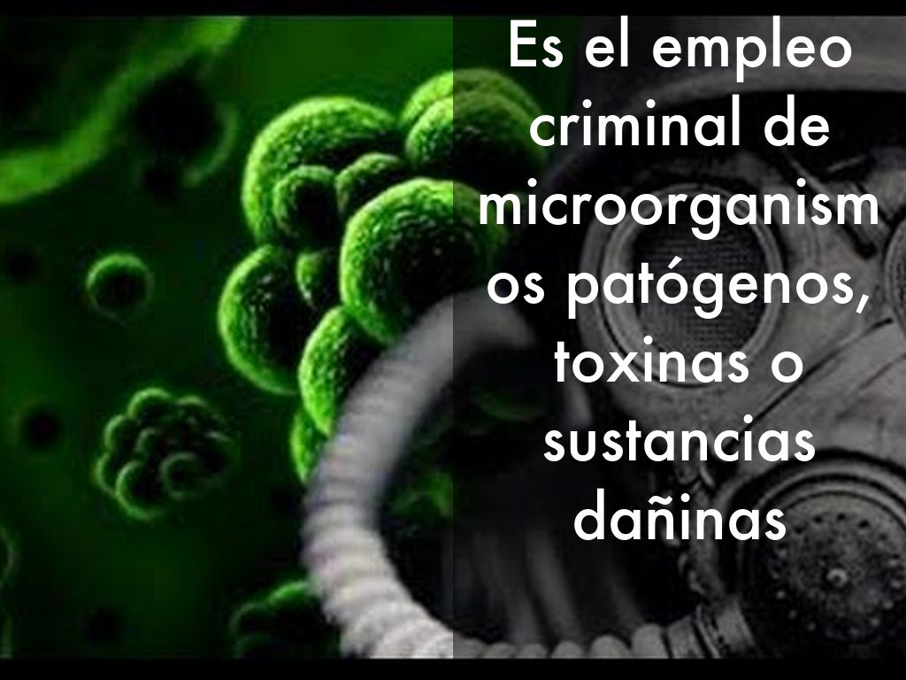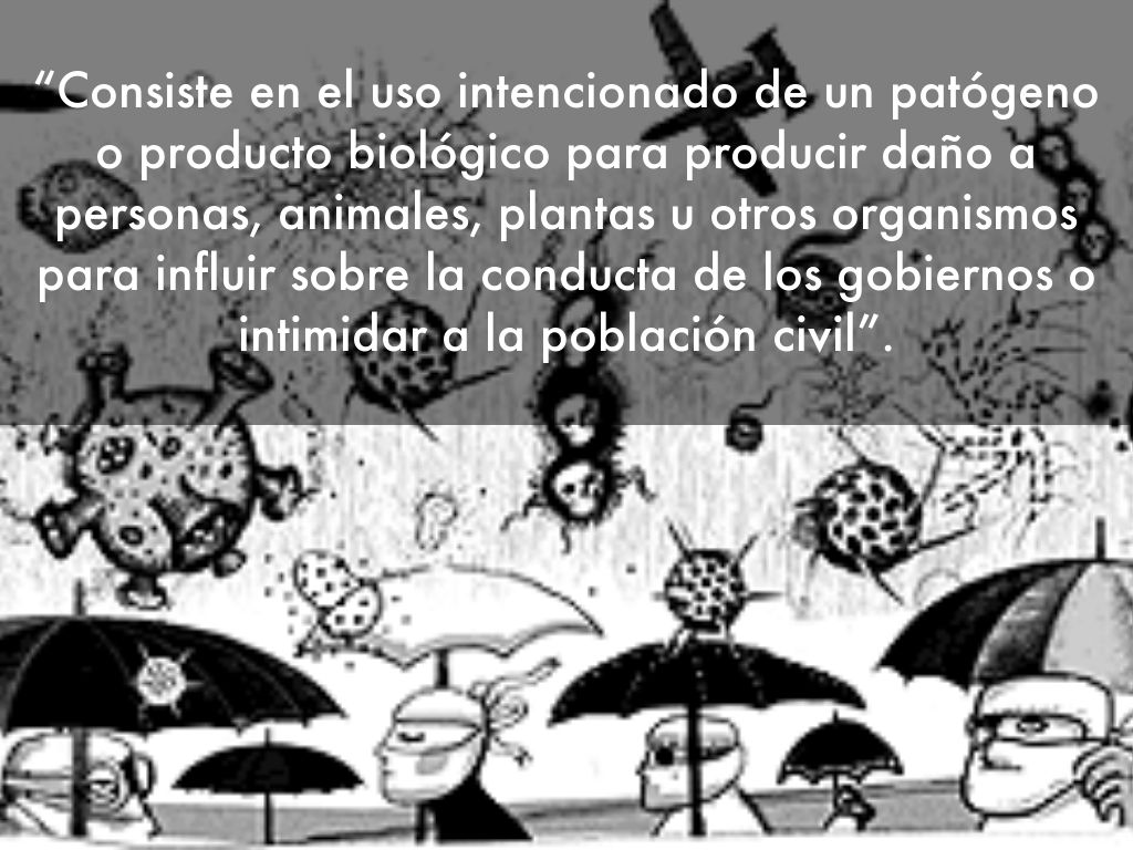 “Consiste en el uso intencionado de un patógeno o producto biológico para producir daño a personas, animales, plantas u otros organismos para influir sobre la conducta de los gobiernos o intimidar a la población civil”.