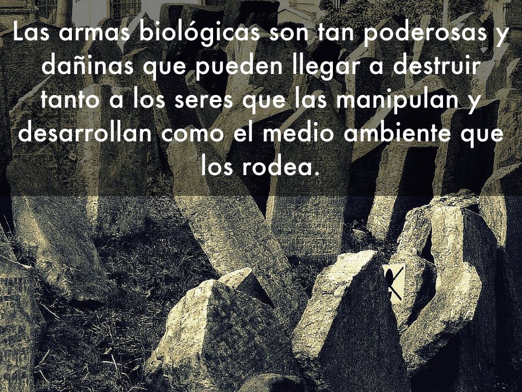 Las armas biológicas son tan poderosas y dañinas que pueden llegar a destruir tanto a los seres que las manipulan y desarrollan como el medio ambiente que los rodea.