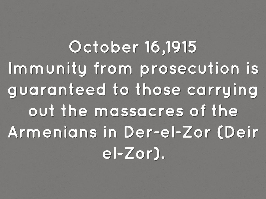 Immunity from prosecution is guaranteed to those carrying out the massacres of the Armenians in Der-el-Zor (Deir el-Zor).
