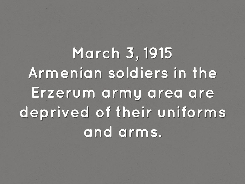 Armenian soldiers in the Erzerum army area are deprived of their uniforms and arms.
