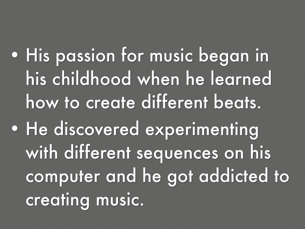 He discovered experimenting with different sequences on his computer and he got addicted to creating music.