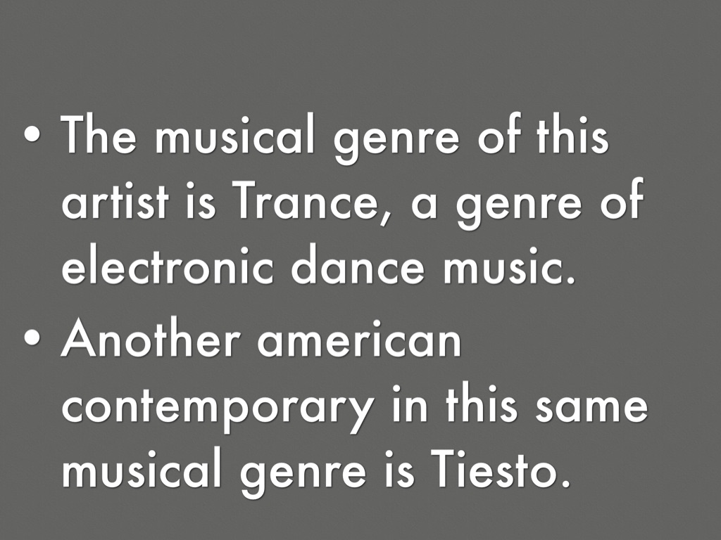 Another american contemporary in this same musical genre is Tiesto.
