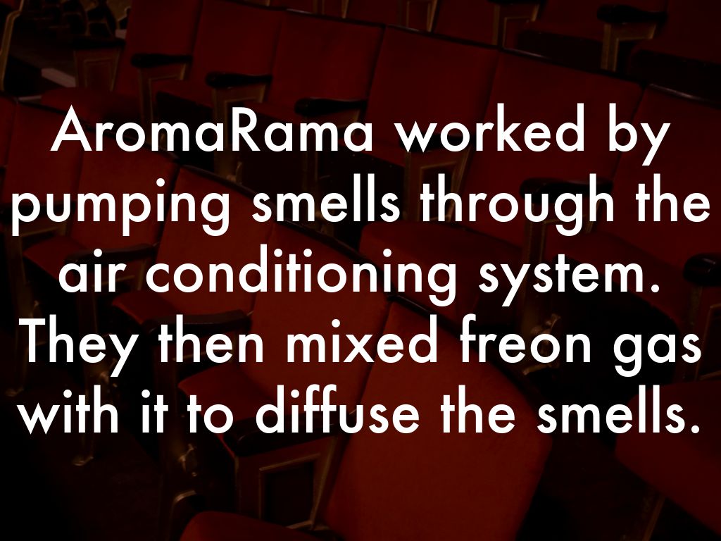 AromaRama worked by pumping smells through the air conditioning system. They then mixed freon gas with it to diffuse the smells.