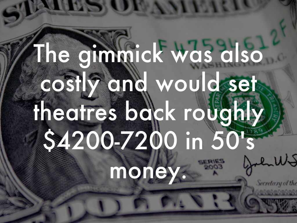 The gimmick was also costly and would set theatres back roughly $4200-7200 in 50's money.