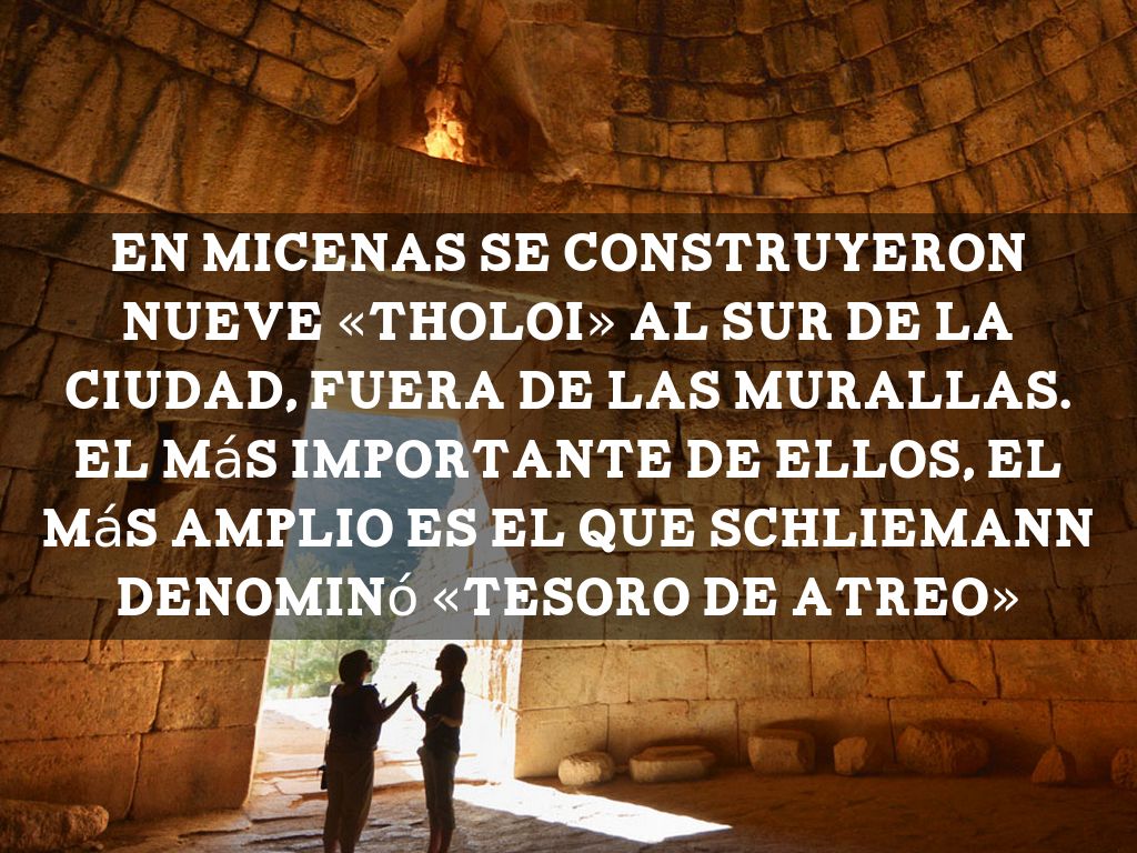 En Micenas se construyeron nueve «tholoi» al sur de la ciudad, fuera de las murallas. El más importante de ellos, el más amplio es el que Schliemann denominó «Tesoro de Atreo»