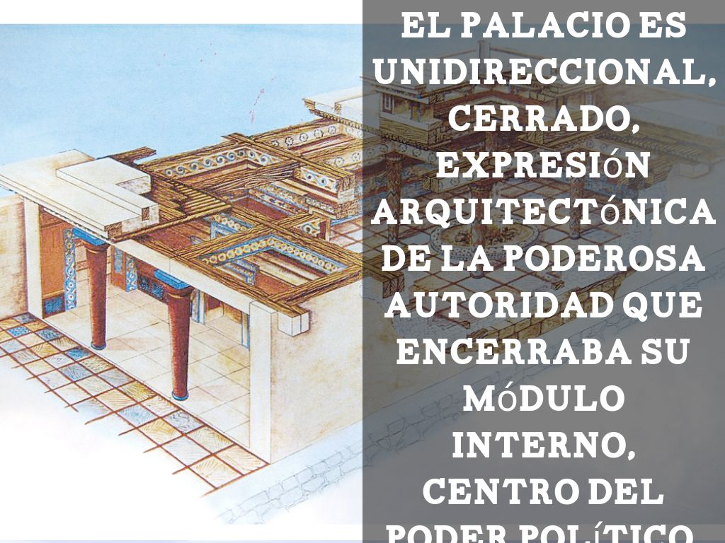 el palacio es unidireccional, cerrado, expresión arquitectónica de la poderosa autoridad que encerraba su módulo interno, centro del poder político, militar y religioso.