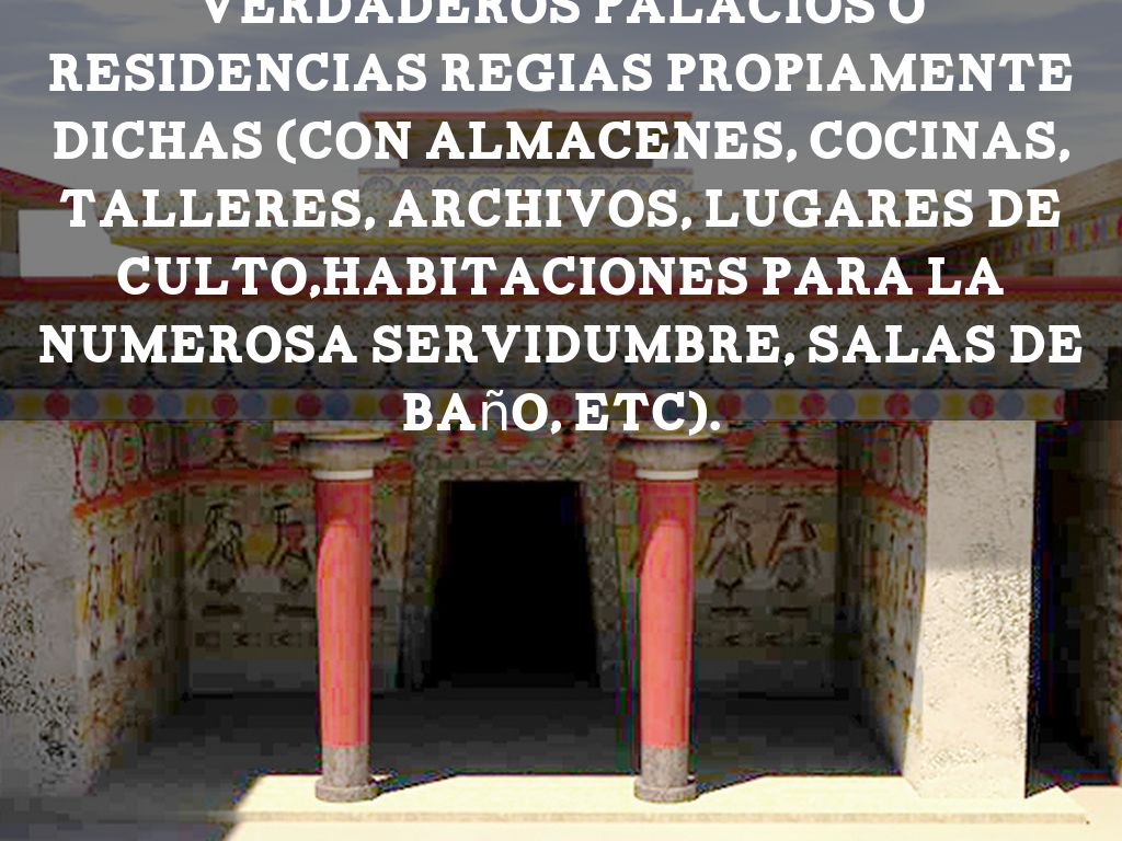 verdaderos palacios o residencias regias propiamente dichas (con almacenes, cocinas, talleres, archivos, lugares de culto,habitaciones para la numerosa servidumbre, salas de baño, etc).
