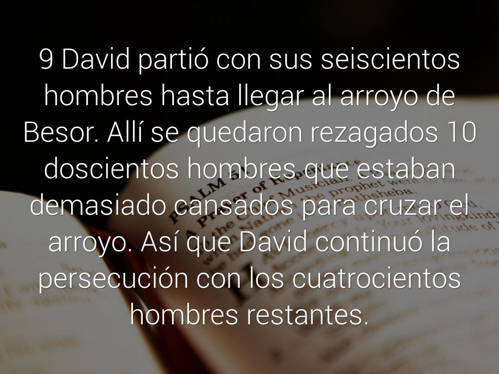 Cuando David llamó, usted arriesgo su vida. Ahora, con la victoria en las manos, vuelve galopando al ARROYO DE BESOR.