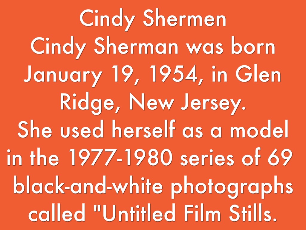 Cindy Sherman was born January 19, 1954, in Glen Ridge, New Jersey.