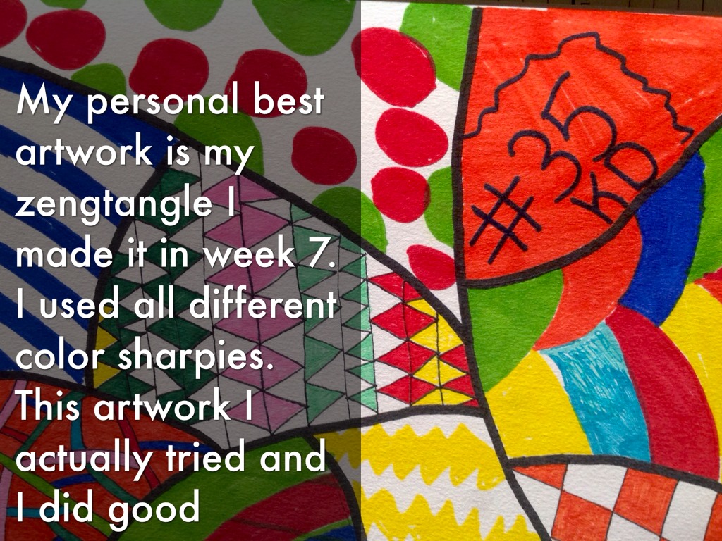 My personal best artwork is my zengtangle I made it in week 7. I used all different color sharpies.