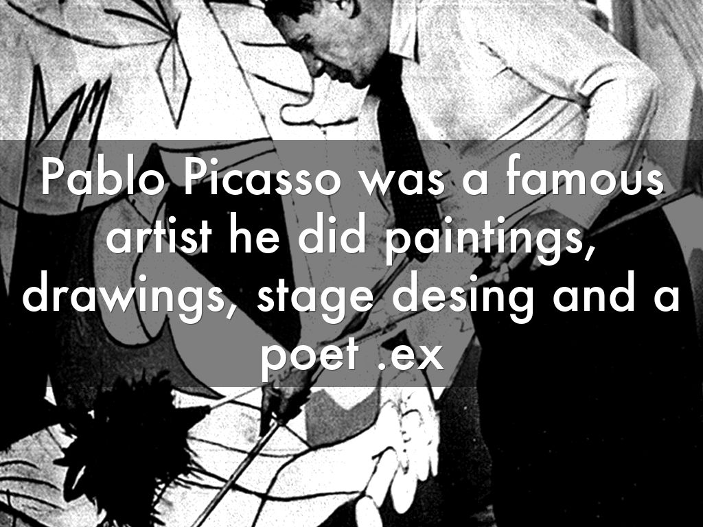 Pablo Picasso was a famous artist he did paintings, drawings, stage desing and a poet .ex