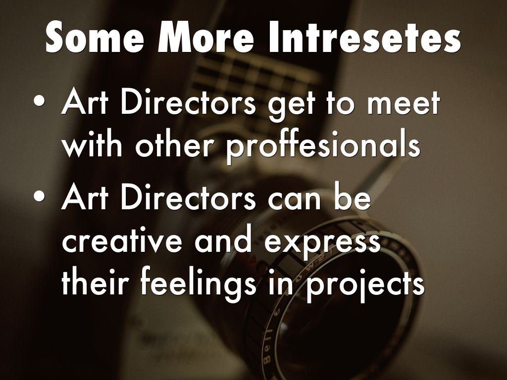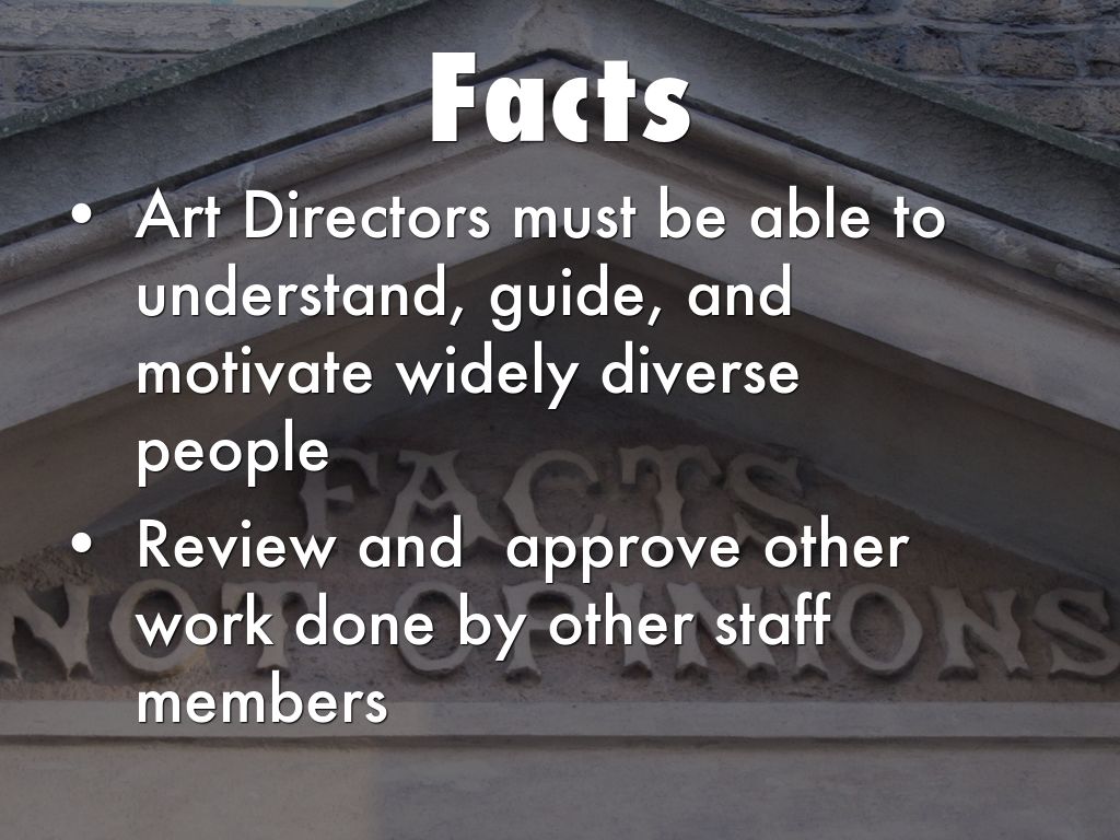 Art Directors must be able to understand, guide, and motivate widely diverse people