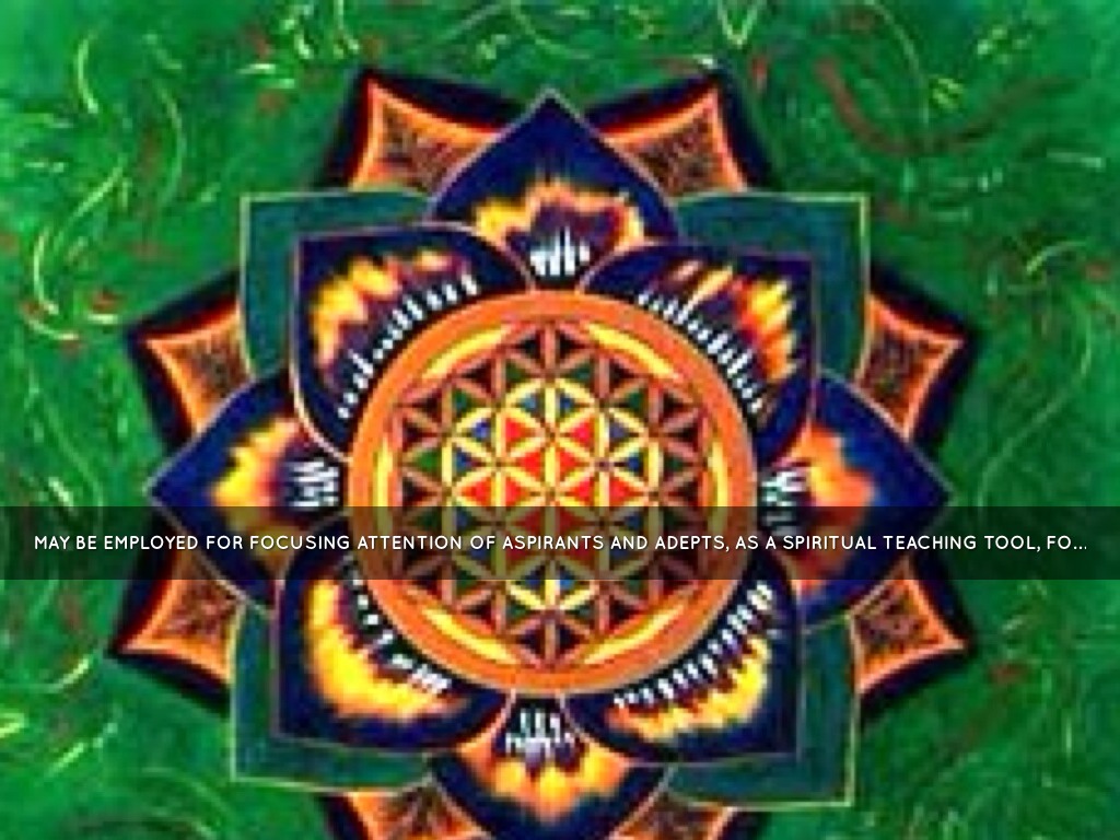 may be employed for focusing attention of aspirants and adepts, as a spiritual teaching tool, for establishing a sacred space, and as an aid to meditation and trance induction.
