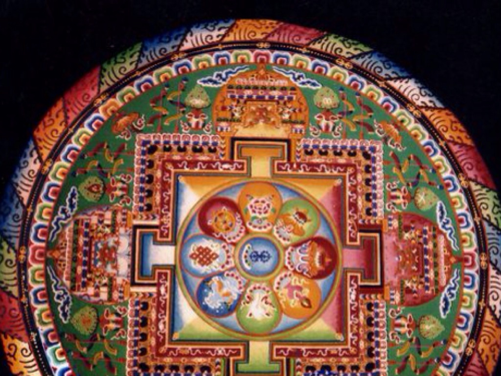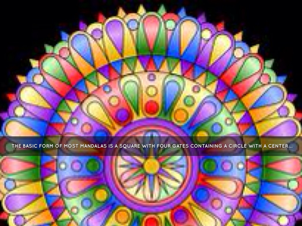 The basic form of most mandalas is a square with four gates containing a circle with a center point