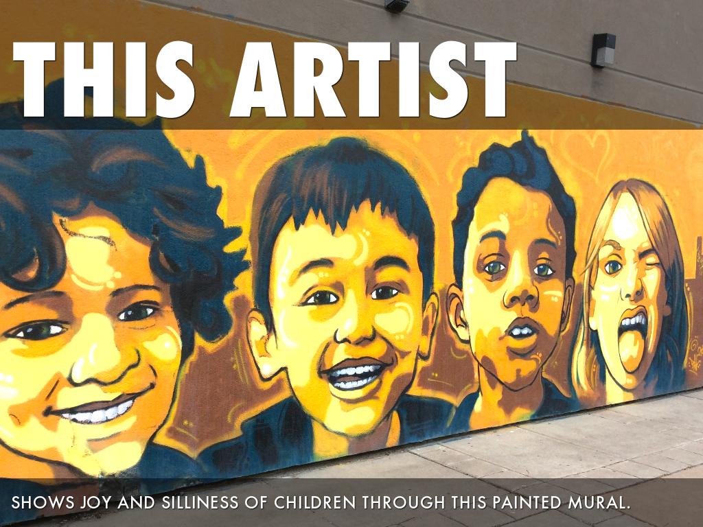 SHOWS JOY AND SILLINESS OF CHILDREN THROUGH THIS PAINTED MURAL.