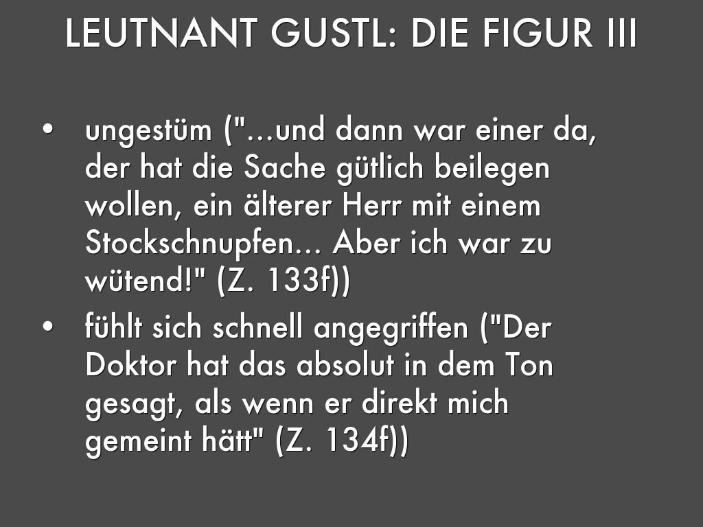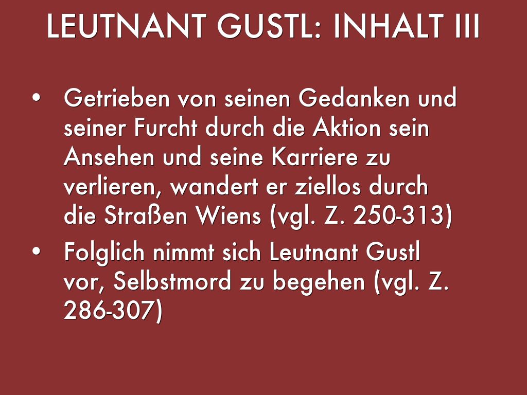 - Folglich nimmt sich Leutnant Gustl vor, Selbstmord zu begehen (vgl. Z. 286-307)