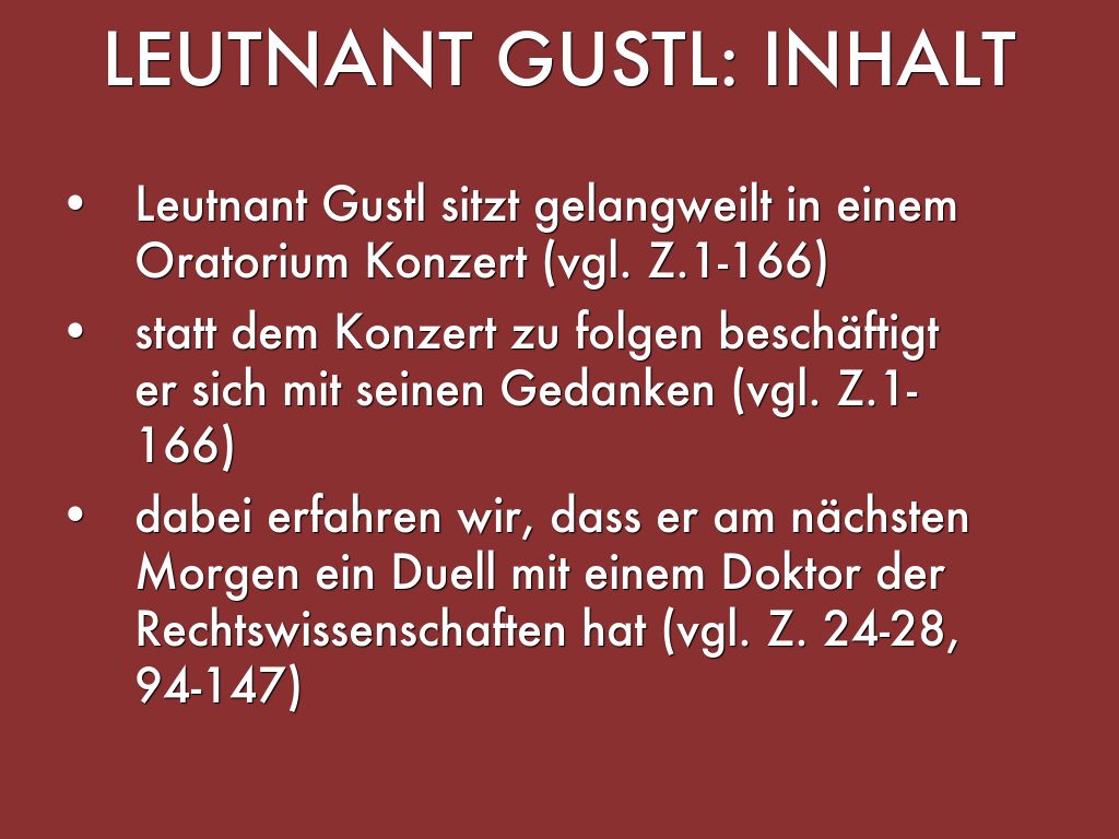 - Leutnant Gustl sitzt gelangweilt in einem Oratorium Konzert (vgl. Z.1-166)
