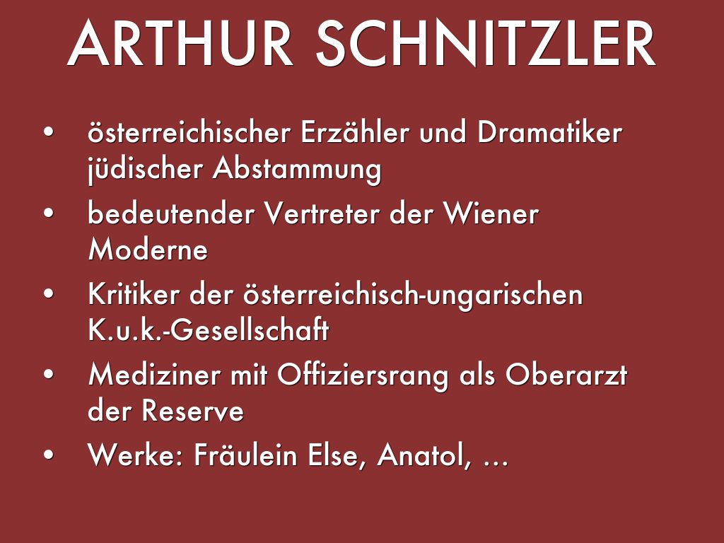 - Werke: Fräulein Else, Anatol, ...