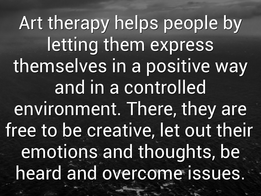 Art therapy helps people by letting them express themselves in a positive way and in a controlled environment. There, they are free to be creative, let out their emotions and thoughts, be heard and overcome issues.